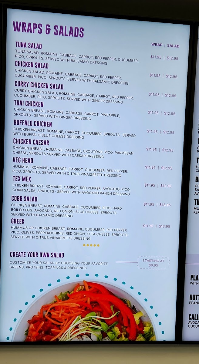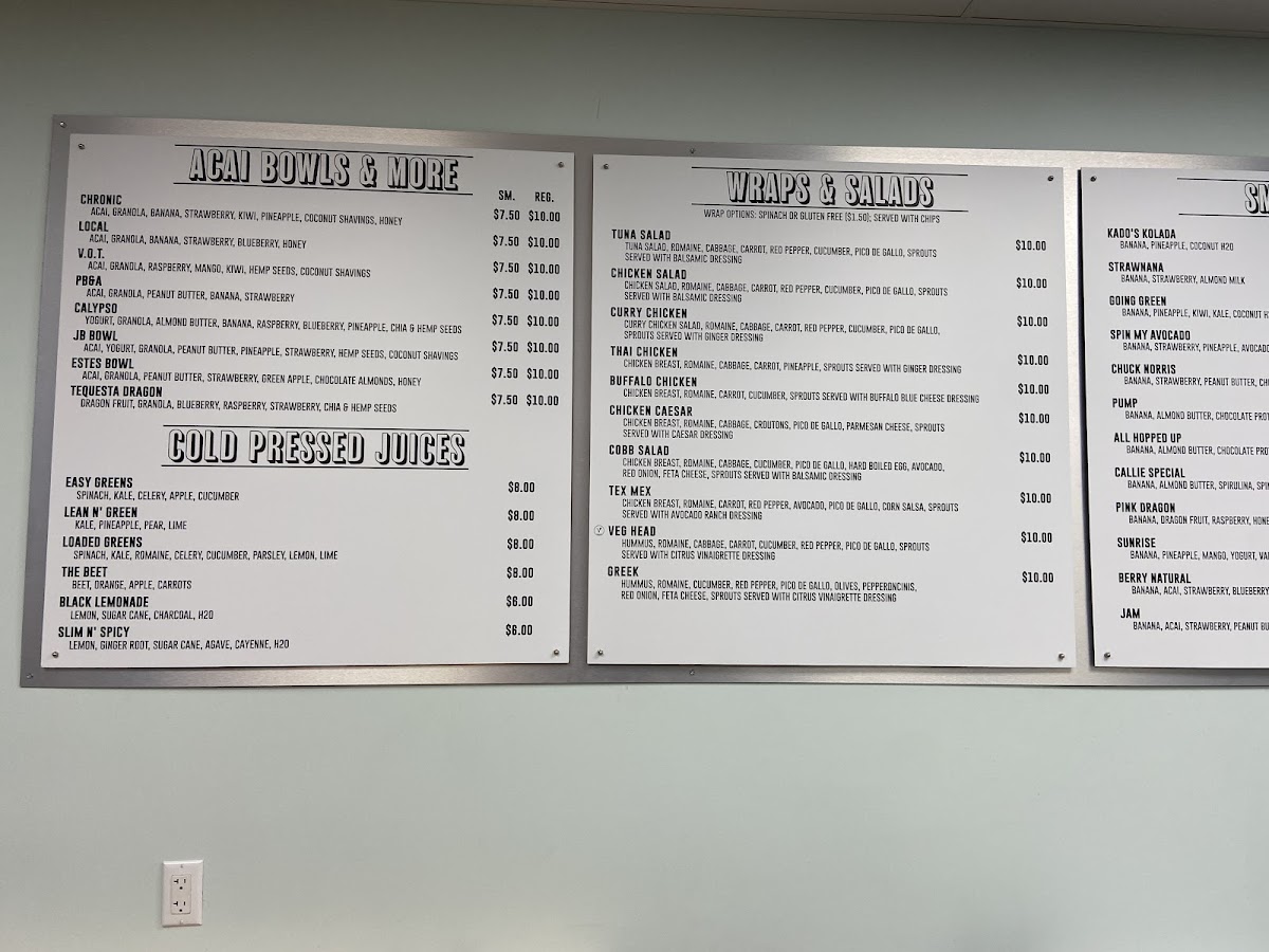 For heartier choices, the Spicy Jerk Chicken salad offers a perfect balance of protein and freshness, while the Tex Mex Salad shines with its creamy avocado ranch dressing. Not to miss, the Calypso Bowl is a refreshing twist, packed with Greek yogurt, almond butter, and an array of fruity toppings.